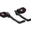 The Carbon Clip-On TT bar is a lightweight option from Enve. On the bike, these bars are noticeably stiffer and more solid than most competitors, which can be attributed to their construction using lightweight uni-directional carbon fiber. The bars are best suited to athletes comfortable with a narrow position, as the pads are positioned only slightly wider than the extensions. This can provide an aerodynamic setup, but can put pressure on arms and shoulders that some athletes might not be accustomed to—though some relief can be found by spacing the bars themselves further apart. The carbon extensions are unique in that they can be cut to the athlete’s choice of either an S-bend or a J-bend.