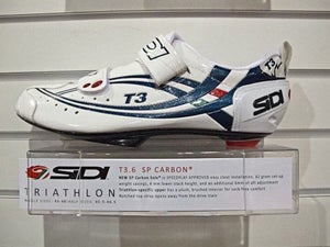 Sidi has revamped their entire triathlon shoe line without changing the Italian company’s signature slim and snug fit. Their 2012 shoes are still built around the exact same lasts as the 2011 models, but the soles and uppers have been updated. Most notably, Sidi now offers soles with a cleat bolt pattern specifically for Speedplay pedals. Nearly all pedals other than Speedplays have a 3-bolt triangular pattern to attach the cleats to the shoes and until now Sidis have been constructed specifically for those cleats. Speedplay riders had to use an adapter plate to ride these fine Italian shoes. Sidi has now designed a sole platform specifically for Speedplay’s 4-bolt pattern along with help from Speedplay founder Richard Bryne. This shoe is called the T3.6 SP and it reduces stack height by 4mm, which means your back and head sit 4mm lower into the bike. It sells for $360 and will be out next month.