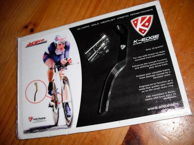 Then this product came along. I will go into in deeper detail in the coming days, as I just got off the phone with Joe Davola, husband to reigning Olympic time trial gold medalist (and former triathlete) Kristin Armstrong, who co-developed and co-created the AceCo K-Edge Chain Catcher out of necessity.