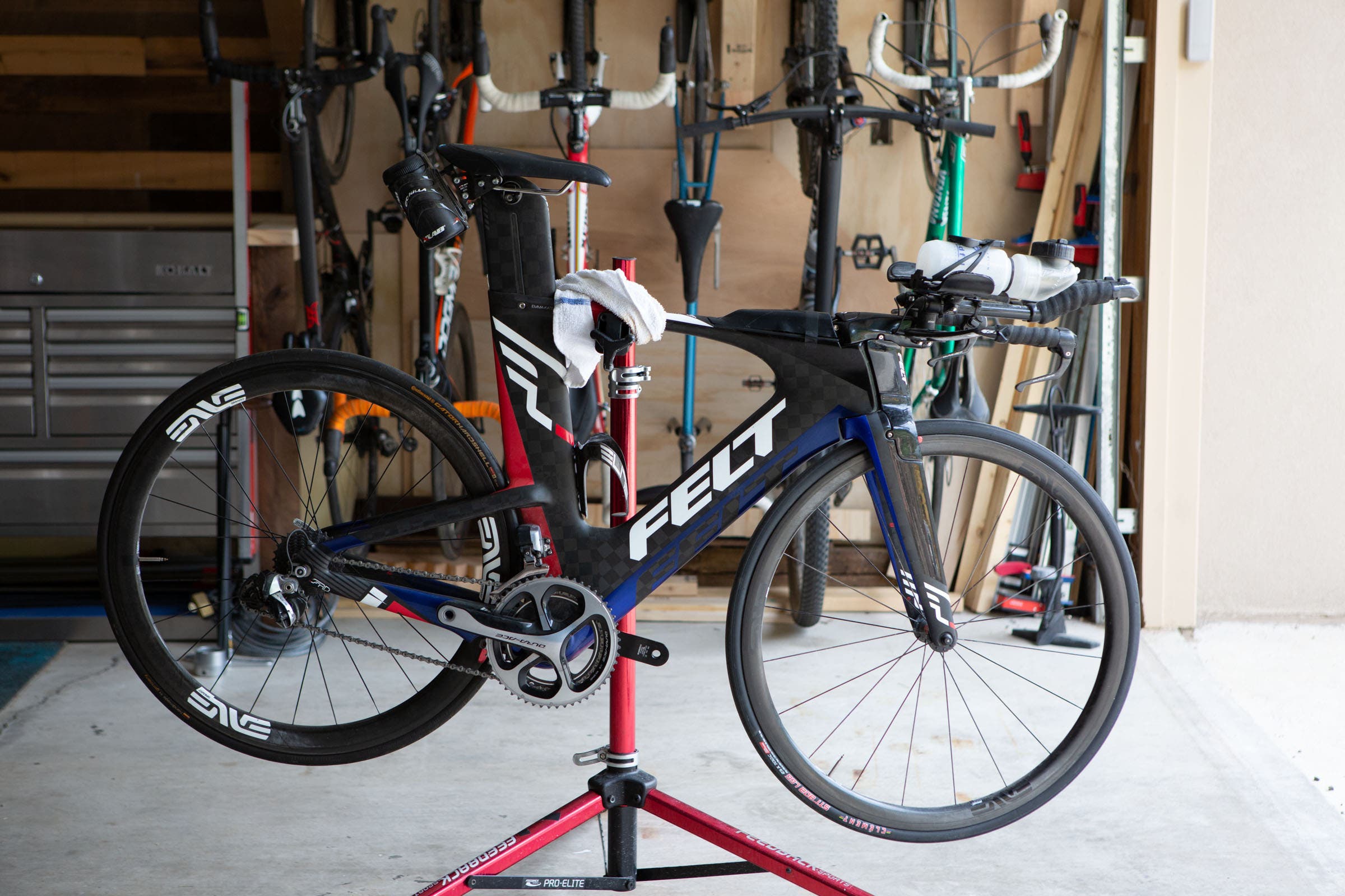 Hours and hours of your rear tire grinding against the resistance wheel of a magnetic or fluid trainer can wear your tire down to thin skin – which could blow at the first grain of sand you encounter outdoors. If you see threads exposed at the center of the tire, or even a drastically flat area on the tire, it’s time to replace it. Even if it won’t cause a blowout, the flat section can cause some very funky handling. Some triathletes like to start their season with a fresh set of tires regardless – plus, it’s a good time to practice your tire-changing skills before you head to the races.
