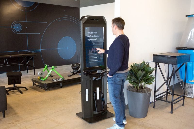 In person, the Match kiosk has a large touchscreen that walks the customer through the process, starting with a few basic questions—What is your gender? What kind of bike do you want? Do you ride with an upright, middle, or low position?