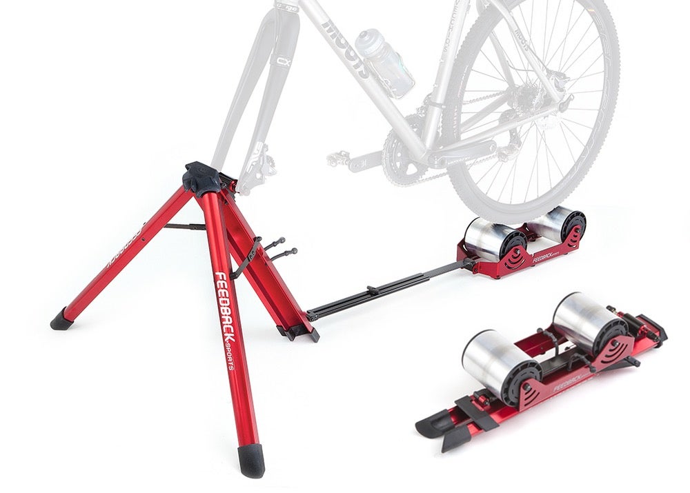 Golden, Colo.-based Feedback Sports built its reputation on making the very best in bicycle repair equipment. Work stands, tool kits and bike racks are its bread and butter. But when company founder Doug Hudson met a machine shop owner with an engineering background who showed him a two-drum, fork mount, foldable trainer, Hudson couldn’t resist getting into stationary trainers. He loved the smooth rolling drums and the progressive resistance magnets hidden inside the cylinders. He partnered with the engineer to incorporate those features on the Omnium, this little marvel of flight-friendly gear.