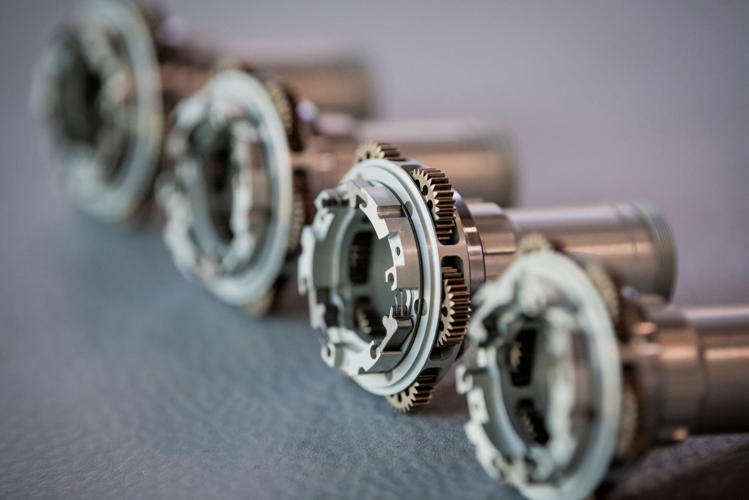 For example, the larger gear on the outside moves at a 1-to-1 ratio, meaning the wheel moves at the same speed as the cassette. When the smaller gear, which has a ratio of 0.686, is engaged, the cassette spins faster than the rear wheel, explained Yannick Mayer, Classified’s technical marketing manager.