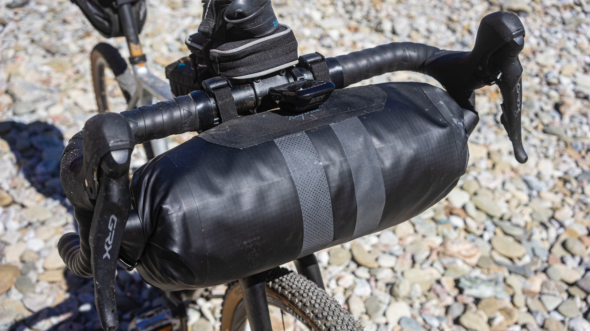 While the price is a little high for what you get, the simplicity of this 16-liter waterproof roll bag is actually a huge feature. As opposed to other more beefy front bike bags, the Rapha version is a very simple dry bag with two roll-up sides, some reflectivity, and three very basic straps to attach it to your bars and stem or steerer tube. The good news about this simplicity is that it fits on a greater amount of bikes with less fiddling, and it’s very very easy to take on and off when compared to a system with a bracket. That said, this is probably more of a casual take-it-to-work or two-night max front pack—if you’re doing more than a few days with full gear on super super rough terrain, you might want something more like the Blackburn bag below. For our Catalina DIY tri adventure, however, it was absolutely perfect.
