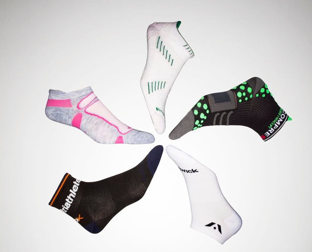 The friction-free SGX socks come in a variety of lengths (no-show to knee-high) and are customizable for your team or club.