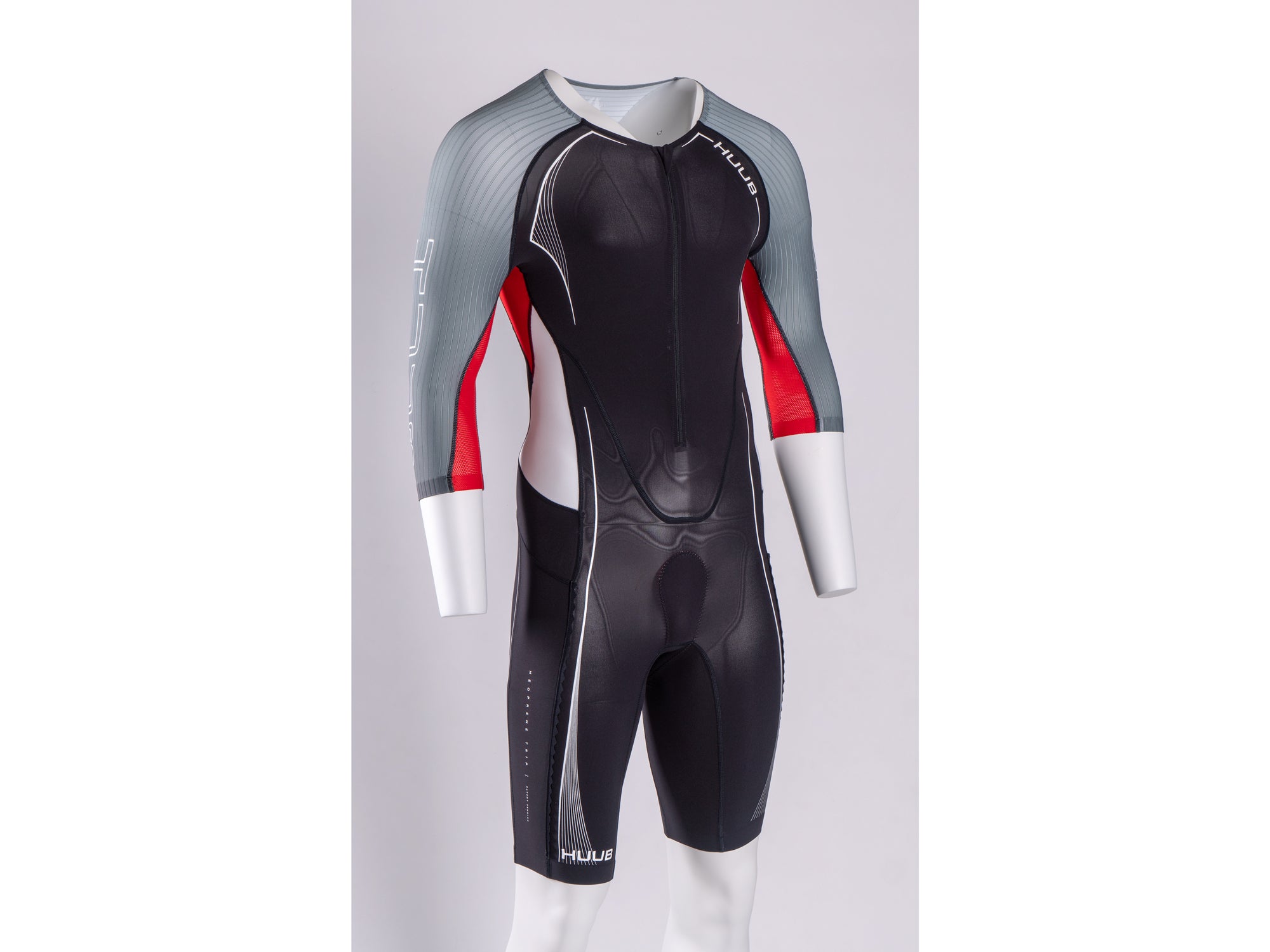 The Anemoi is made purely for speed (Huub promises a six-minute savings over the Ironman distance when averaging 22 mph on the bike)—and that can be good or bad depending on what you’re looking for in a triathlon suit. On first glance, this looks like a short-course suit, due to very little storage (only a small pocket on the low- er back), but Huub says this is inten- tional, citing today’s bikes with integrat- ed storage. The suit feels well made, but the chamois is a tad thin for long racing—a tradeoff for comfort on the run. The super flexible sleeves and use of Coldblack technology round out the details.