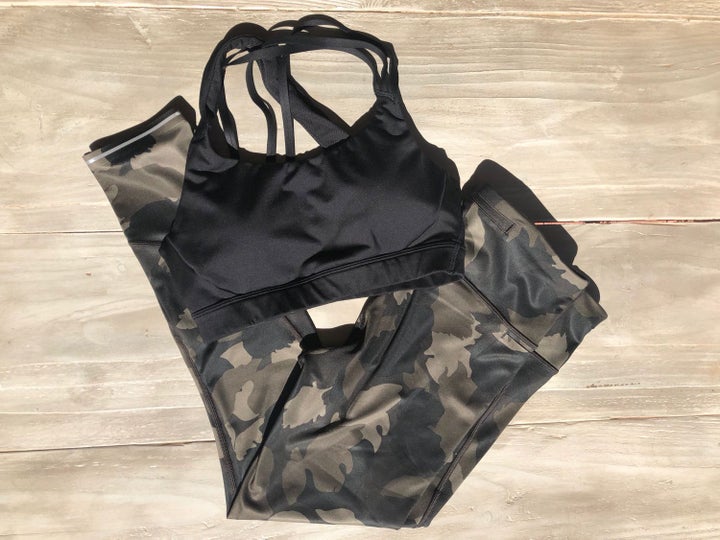 While I like the pants, I love the sports bra. Most sports bras fall in the category of function or fun—but not usually both. This one manages not to sacrifice comfort or fashion. I was nervous the three straps on the side wouldn’t hold up well, but the overall security was a pleasant surprise and I find myself wishing I could wear it for every workout. Only standard sizes (XS to L) are available, so if you need a specific cup size this style probably won’t work for you.
