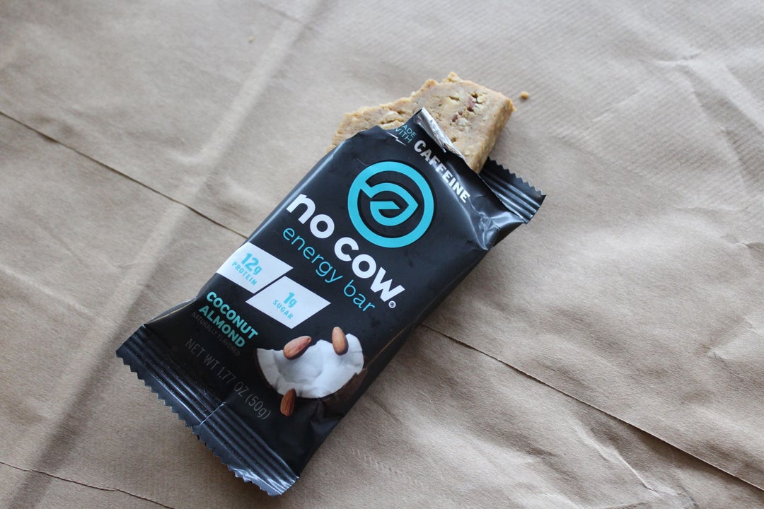 So, practically every bar on the planet today touts itself as “non” many things—non-GMO, non-soy, … No Cow Energy Bars are all that (non-dairy, non-GMO, non-sugar, non-gluten, non-soy), and they’re vegan. But they draw the line on caffeine—each bar contains 45mg, or the equivalent of a half-cup of coffee. For me, that’s a decent mid-afternoon jolt en route to an evening workout. The bars do dish out a sizable amount of fat (10g), carbs (24g), protein (12g), and dietary fiber (9g), but they also contain sugar alcohol and stevia—sweeteners not everyone loves.