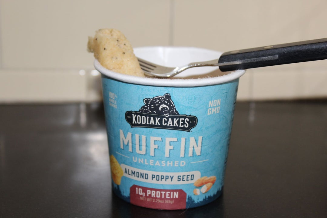 Kodiak Cakes is always coming up with new flavors for its various whole grain products, and one that I’ve been liking is the Almond Poppy Seed version of their muffin cups. While I’m not a big fan of packaged foods, I admit these cups are super handy to pack for travel and work, when there’s little time to cook or hit the food court. Like all of Kodiak’s muffin-in-a-cup varieties, there is a smidge of prep: Add a little water or milk to the cup of dry readymade muffin mix, stir, microwave the whole thing for one minute, and voila. The resulting hot Almond Poppy Seed muffin is tasty (eat it with a fork straight out of the cup) and contains 260 calories when prepared with water; 10 grams of protein (more if prepared with milk); 41 grams of carbs (15 of those grams coming from sugars); and a generous amount of sodium (340mg). Bonus: The ingredients on the product’s nutrition label are all pronounceable.