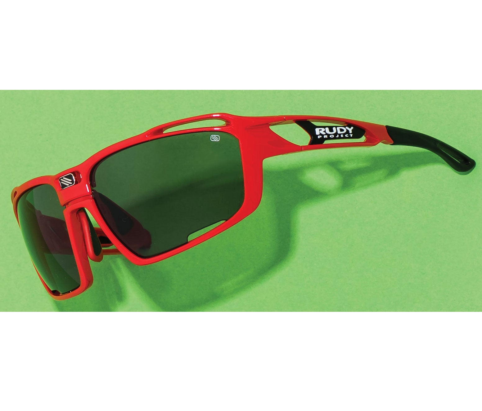 Think of the Sintryx like Transformers—you can make them sit higher or lower on your face by bending the integrated nosepiece to your will, or squeeze your head for dear life (or not) by bending the middle of the temple grips. That adjustability made them fit both our smaller- and larger-headed testers. The myriad cutouts in the frames and below the lenses improved airflow and reduced sweat-induced fogging (also adding to the Transformers look). Some might find the thick frames distracting—especially in fire red gloss—and a bit heavy, but you can take comfort knowing that if you ever crash on them, they’re specially designed to break up without poking your eyes out.