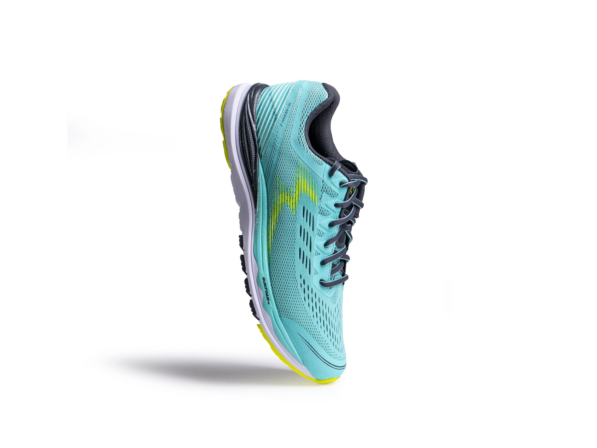 The word “cruise” comes to mind in describing the ride of the Meraki 2—a high-comfort trainer that delivers a plush performance for the long run. Fans of the first version will appreciate that round two is lighter and now has a seamless, more svelte mesh upper for greater breathability. The Meraki carries through its easy heel-to-toe transition with a carbon fiber shank and midsole design for flex, structure, protection, and fluidity. The pressure-free tongue is an added bonus for those who like to run sockless off the bike.