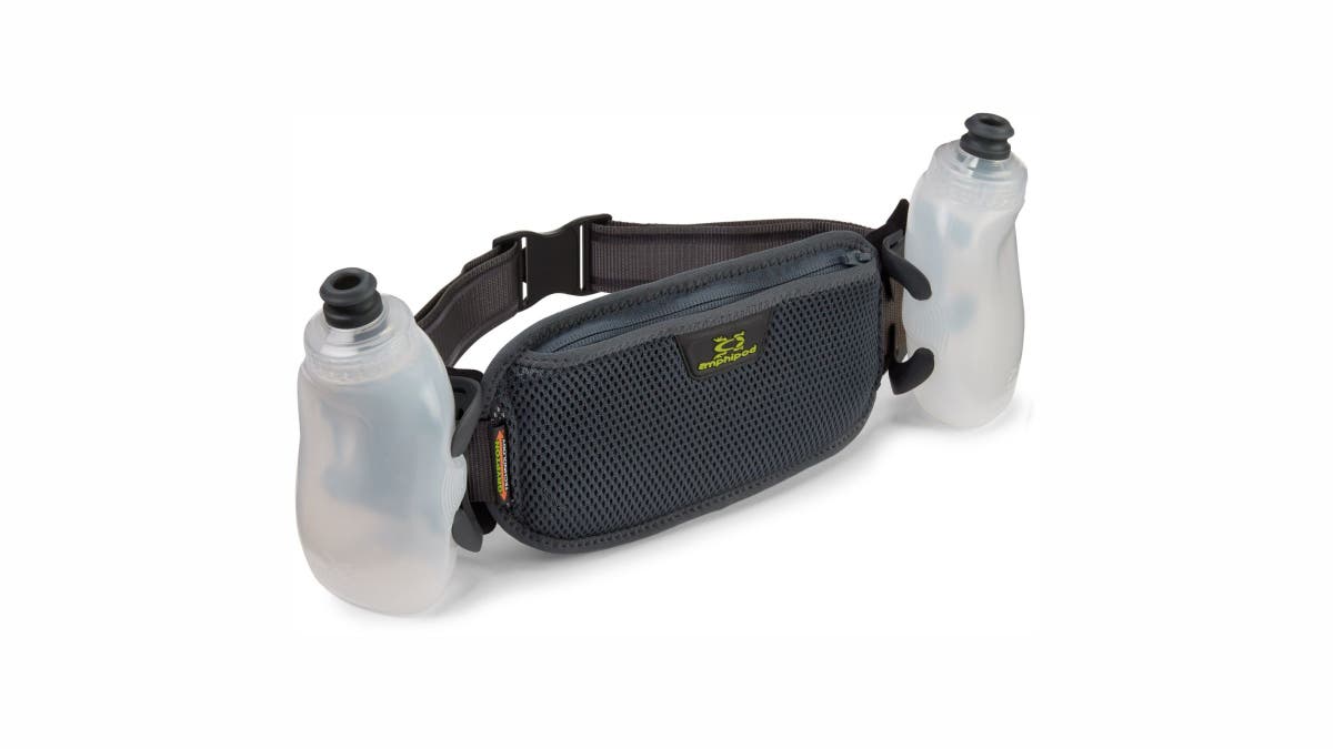 For shorter runs, a handheld bottle can do the trick. Rather than a round one that is tough to grip, many athlete handhelds are molded to fit the curve of the hand. A strap keeps the bottle secure, while an optional pocket allows a small spot to stash a car key or a gel.