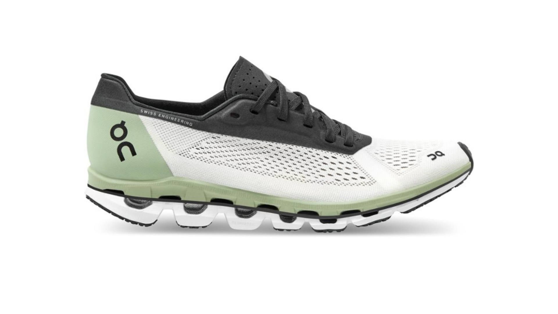 On’s carbon-fiber-infused, rockered “speedboard” boosts propulsion as it flexes and rebounds, and provides a proprioceptive platform between two layers of independent Cloud pods of semi-firm, bouncy Helion foam that have variable densities and rebound characteristics based on where they are positioned under the foot. The fit is exceptional, hugging the heel and midfoot while leaving slightly more room in the forefoot. The ride feels low to the ground, connected, smooth and speedy, while limited segments of outsole rubber optimizes traction while keeping the weight down. The upper gives off an airy, “barely there” sensation, making the CloudBoom feel lighter than it is. Our wear-testers reported it rides like a surprisingly comfortable track spike for road racing, one that rides softly and smoothly enough to wear for long miles.