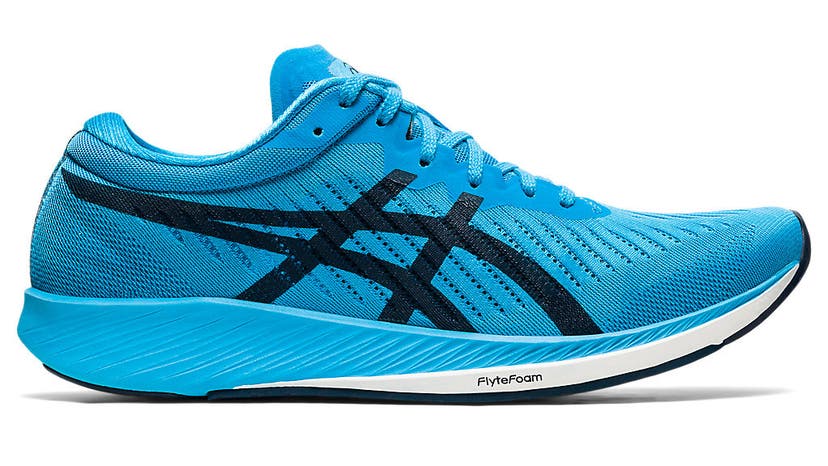 If you want to try a shoe with some of the Next%’s high-turnover accommodating qualities, the METARACER has a lot of the uptempo characteristics, but it is closer to being an old-school racing flat as its lower profile and Asics’ GUIDESOLE technology and carbon fiber plate in the midsole provide a less dramatic roll-through transition. For more on the Asics family of supershoes, check out our members-only face off between “team Asics” and “team Saucony.”