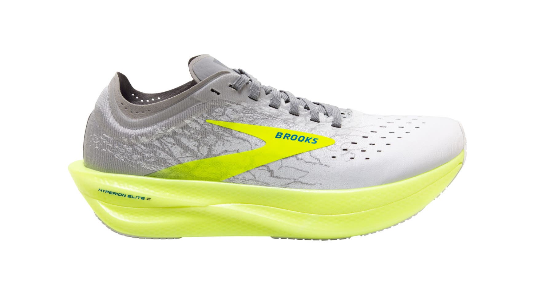 Brooks’ second version of the carbon-fiber-plated Hyperion has a more durable nitrogen-infused foam and shape to give a noticeably springier feel. The midsole cushioning dampens impact forces and smooths the ride without excessive squishing or bouncing, and its moderate, unobtrusive rocker speeds stride cadence along without rearranging it. For a super shoe, the Hyperion Elite 2 manages to feel somewhat “normal” even though it often leads its users to run 10–15 seconds per mile faster with what seems like a similar effort.