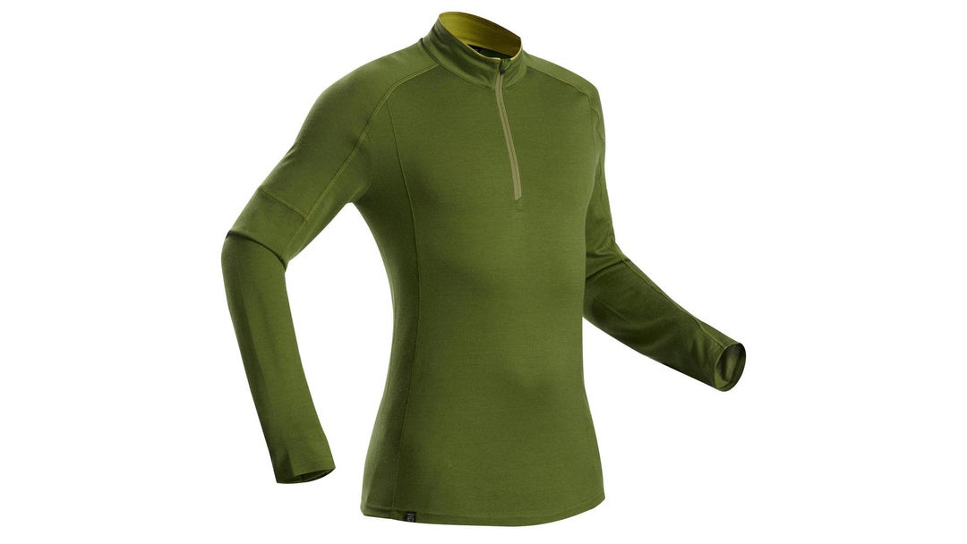Normally you have to sacrifice warmth for breathability but the Quarter Zip Baselayer manages to accomplish both, thanks in part to venting mesh and a dual-layer blended Merino wool construction that features a thin inner layer to wick away moisture and stay dry. The zip neck is generous enough to bury your chin and warm your cheeks, and the hidden thumbholes in the sleeves add to the top’s versatility. The long-sleeve shirt works well as either a base or mid layer.