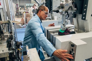 A demonstration of the customized footwear from Brooks, HP, and Superfeet. Photo provided by Brooks.