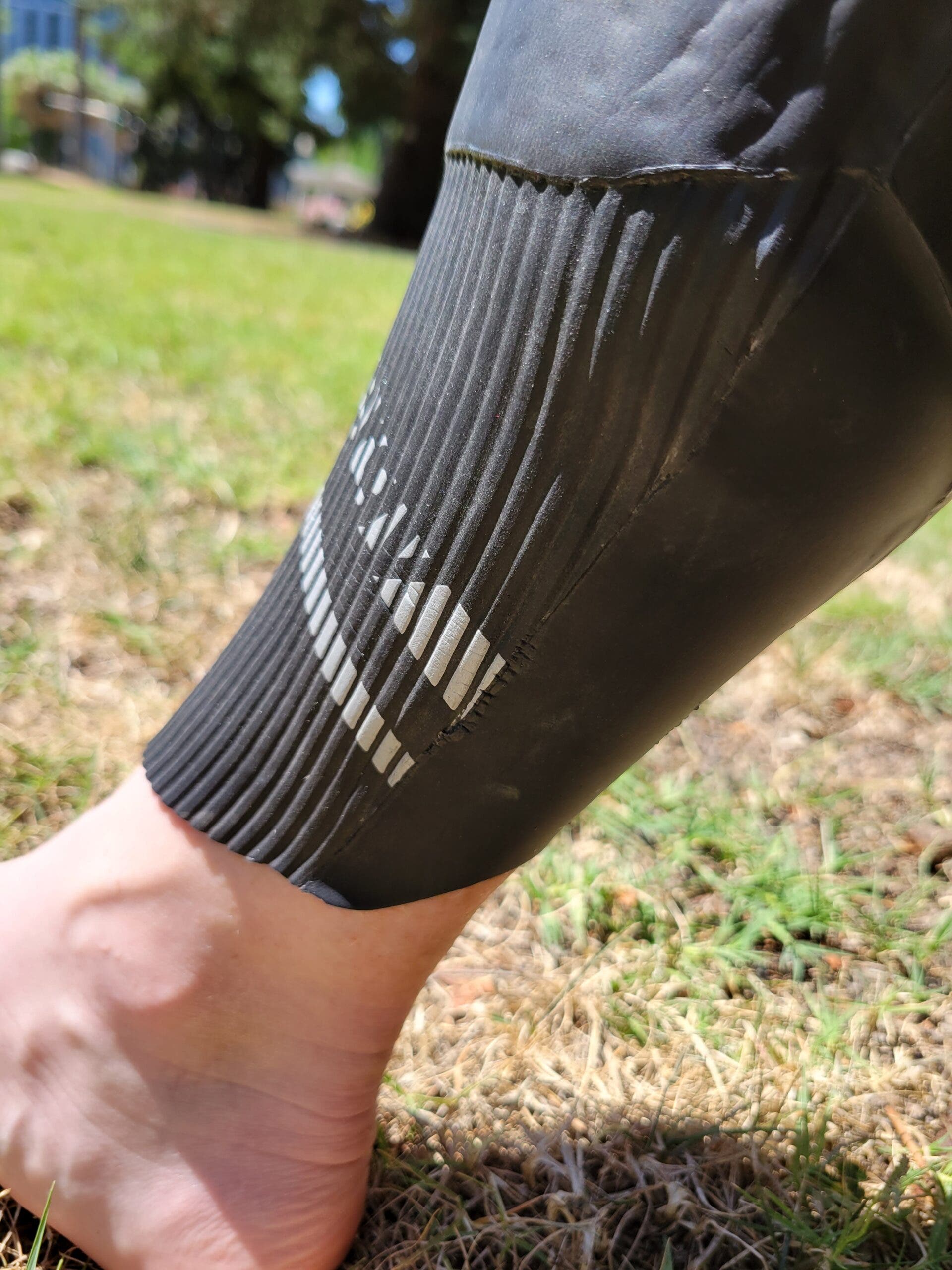 And while this may be nitpicky, it’s worth noting: Once you pull the zipper down, as you run through transition, it’s actually quite tough to get the velcro open. This is a plus and minus. It’s designed to stay close and lay flat, preventing the neck from opening or moving while you swim, but when it’s time to get the wetsuit off, this becomes a challenge if you want it to come off quickly!