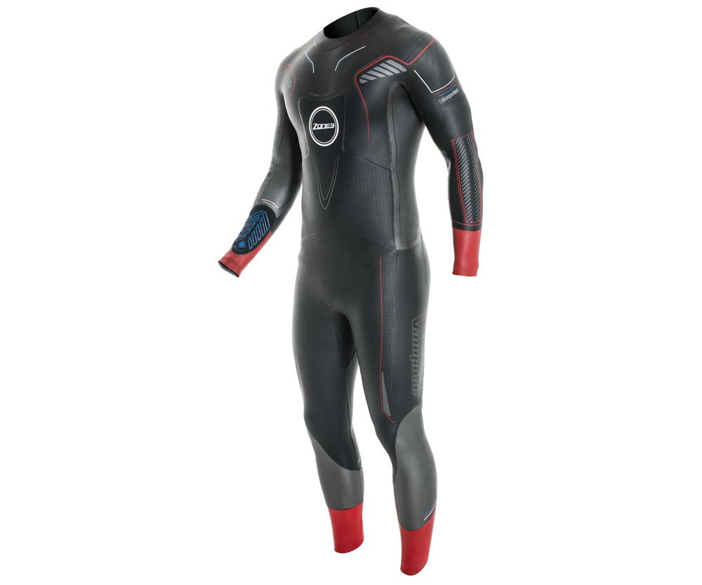 Super flexibility all-around means this suit will hug your curves without hindering your stroke. No matter what your style—short and choppy, long and glidey—the Vanquish will back you up with evenly distributed buoyancy and gentle rotational aid. The bottom half comes flying o in transition, though you’ll want to exercise a little more caution with the thin wrist openings—a hasty yank could put a gash in your investment. Whether you’re doing a sprint or an Ironman, you’ll like this suit; though you might want to reserve it for race day and key prep workouts to ensure its longevity. No showing o on your everyday Saturday group swims! It seems to run a bit big in the chest, so if you’re not particularly muscly, size down a notch.