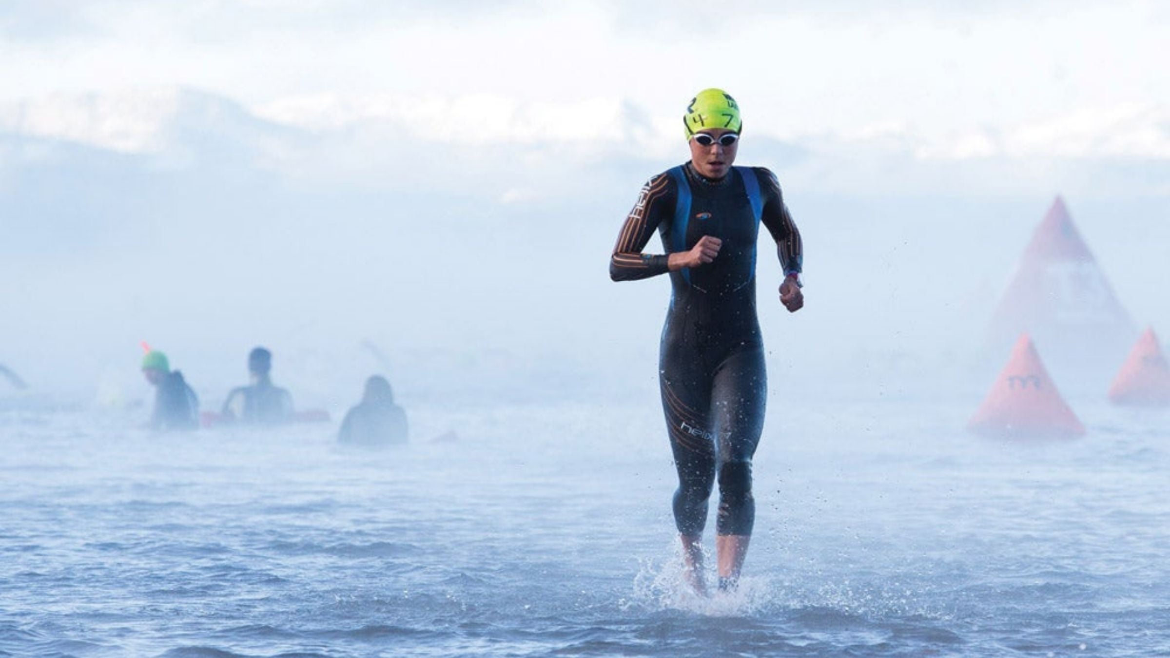 “Cold shock response is when you get in [cold water], take a deep breath in and then hyperventilate,” Massey explains. Blood pressure and heart rate increases when this occurs, which could trigger arrhythmias or cardiac arrest. Panic can also set in, and as such, it’s during this initial phase where many drownings occur, especially among individuals who have fallen through the ice and aren’t expecting to suddenly find themselves submerged. But even those who willingly enter the water experience this response: If you’re in the midst of a mass swim start and another athlete swims over you as you’re gasping for breath, the resulting panic could also be problematic. “That’s the drowning process started,” Massey said.