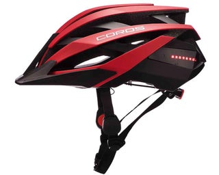 The Coros Omni Smart bike helmet and app keeps you visible to drivers with a built-in red tail light and lets you listen to music, get voice navigation, and instantly answer phone calls as you ride without blocking out traffic sounds. It utilizes bone-conduction technology, which pumps wind-free sound vibrations into your cheekbone, leaving your ear canal clear to hear traffic noise (a legal requirement in California.) The helmet includes a built-in microphone, a battery chargeable to 10 hours, a snap-on visor, and a bar-mounted remote for audio control of volume, track forward, pause/play, and calls. The app will send a message to your contacts if you crash (i.e. experience g-force impact over 1G.)