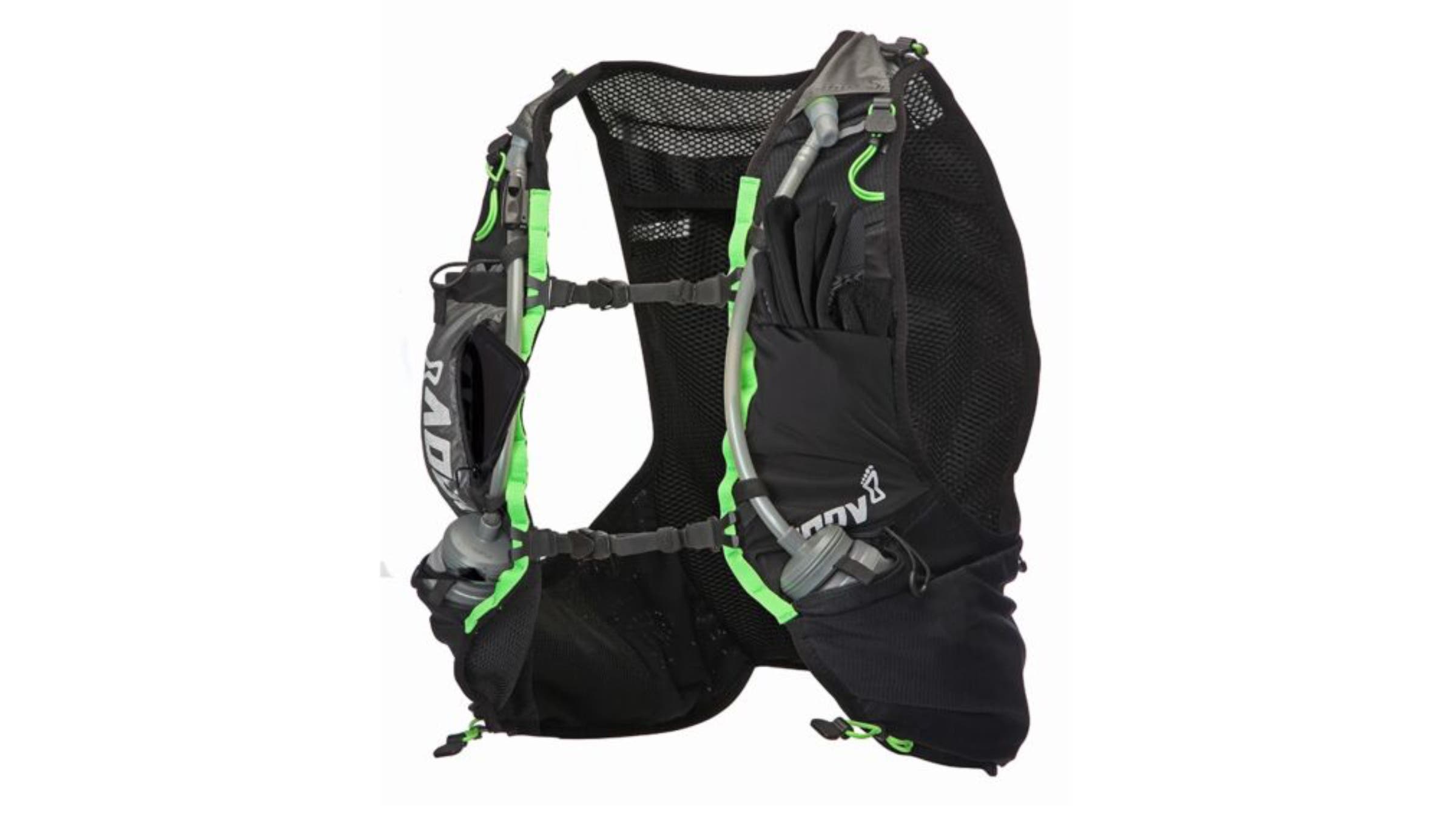 The Race Ultra Pro Vest from Inov-8 is one of the lightest hydration vests on the market, but it allows you to carry up to three liters of water, as well as any other gear you might need on a long run. With a harness-style fastening mechanism and an ultra-close fit, it’s the least cumbersome way to carry a lot of liquid and gear for runs of 20 miles or more. Mountain bikers will love the hands-free hydration and substantial storage as well.