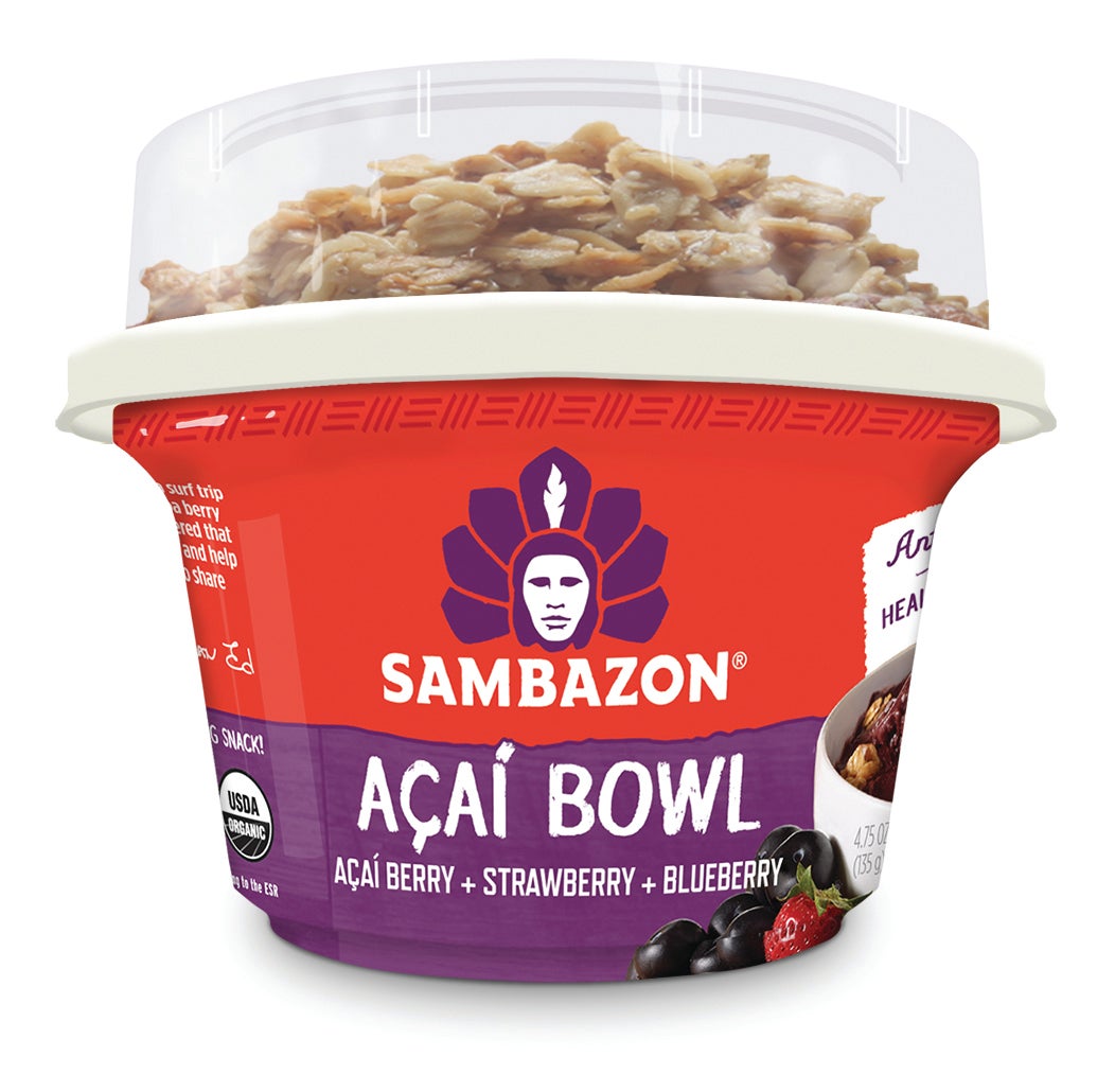 Frozen Sambazon Açai Bowls are a convenient way to eat nutritious açai at home—without the blender mess. Each bowl thaws in about 10 minutes at room temperature and comes with delicious Nature’s Path organic granola, which adds a satisfying crunch to the fresh cocoa-berry flavor. Available in two flavors (açai berry, or açai berry with strawberry and blueberry), each bowl is rich in antioxidants and carbohydrates plus 5–6 grams of fiber and 3 grams of protein, making it a refreshing, filling snack or breakfast. We also recommend topping it off with any fresh fruit you have on hand!