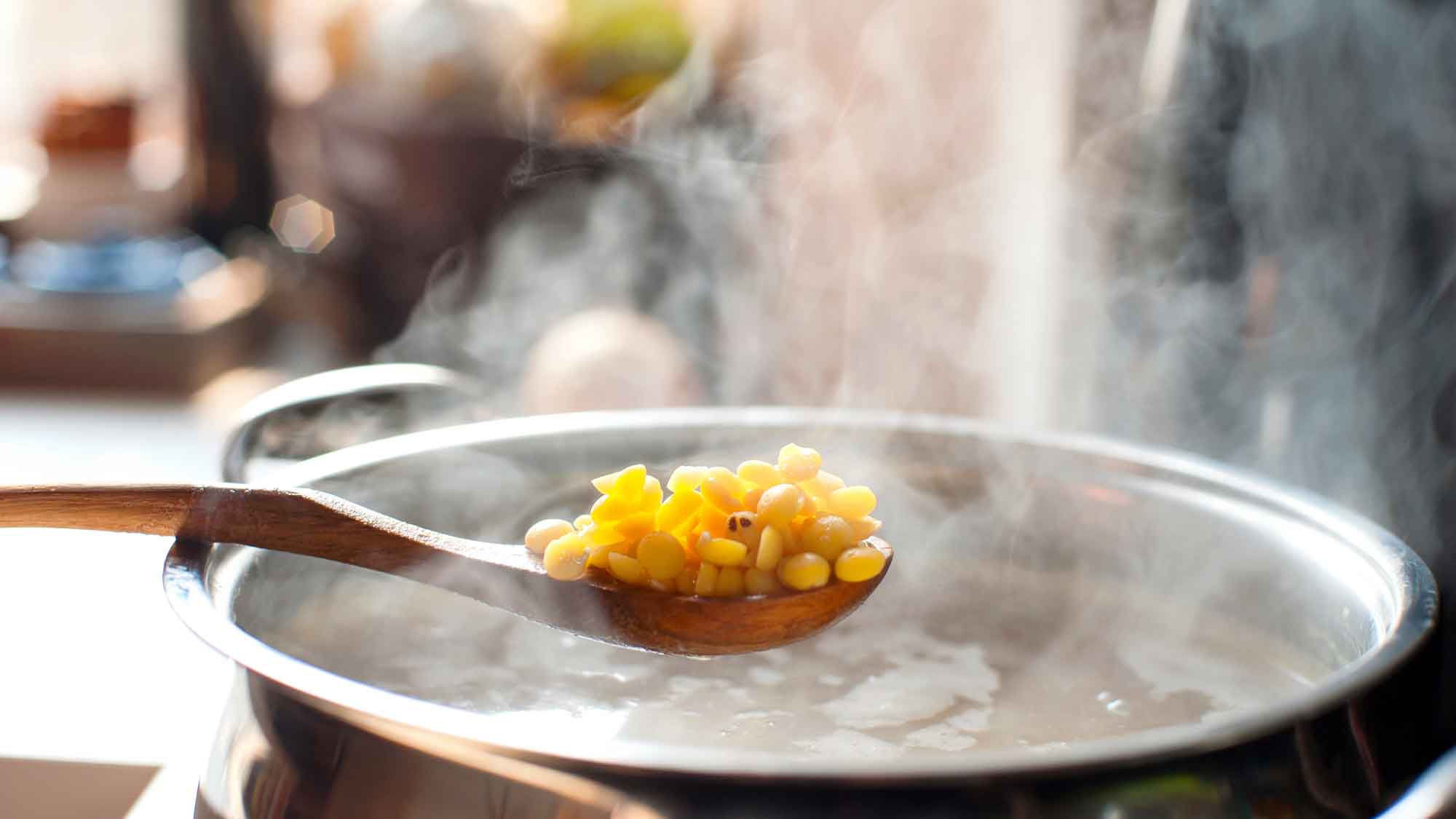 Transfer the cooked cauliflower and chicken stock into a food processor and purée until smooth. Return the cauliflower mixture to the pot and fold in half the corn and half the yogurt. Cook for another minute or two over low heat to warm throughout.
