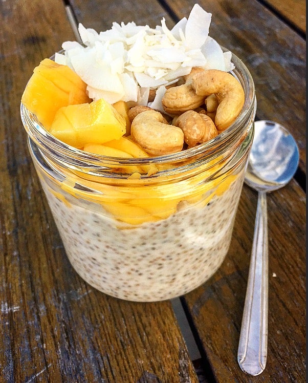 3. Serve in individual containers with the mango, cashews and coconut flakes divided and arranged over the top.