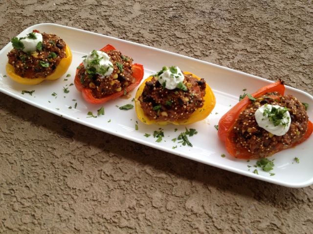 This is one of those accidentally cool recipes. I knew I wanted southwestern flavors, but I had to experiment with the ingredients. The result is a delightful tasting stuffed pepper full of texture and unique flavor. Don’t be afraid to put a personal touch on this recipe by adding spices or substituting ingredients.