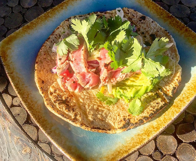 When you have an ingredient as fresh as yellowtail or ahi tuna, it’s best to keep it simple and let it speak for itself. Fresh cilantro, a schmear of avocado, and an easy slaw are all you need for a light summer’s meal.