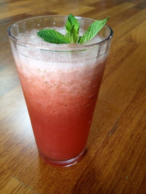 In a blender, process the watermelon, mint, sparkling water, and agave until smooth. Then add the ice cubes, and liquefy for 30 seconds. Makes 4 servings.