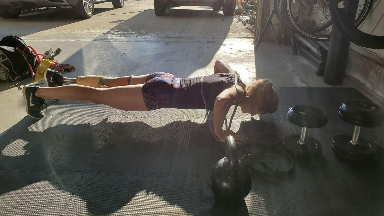First, the Paralympian needs to note how much salt she takes in—too much sodium can result in slight bodily bloating, causing discomfort when trying to fit into her prosthetics. The pro also switches out her prosthetic based on training sessions: she has a prosthetic for biking, running, lifting weights, and day-to-day wear.