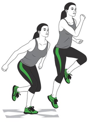 Since the quads help to keep the knee caps steady during running and walking, thereby skirting issues like patellar tendonitis, it is important not to focus all your energy on the hamstrings. Dynamic exercises that engage both of these big muscles will assist in establishing a balance in strength between the two. “Ideally, your hamstrings should be operating at no less than 60–75 percent of quad strength and among top runners, the ratio is closer to one-to-one and sometimes hamstring strength actually exceeds quad strength,” explains Horowitz.