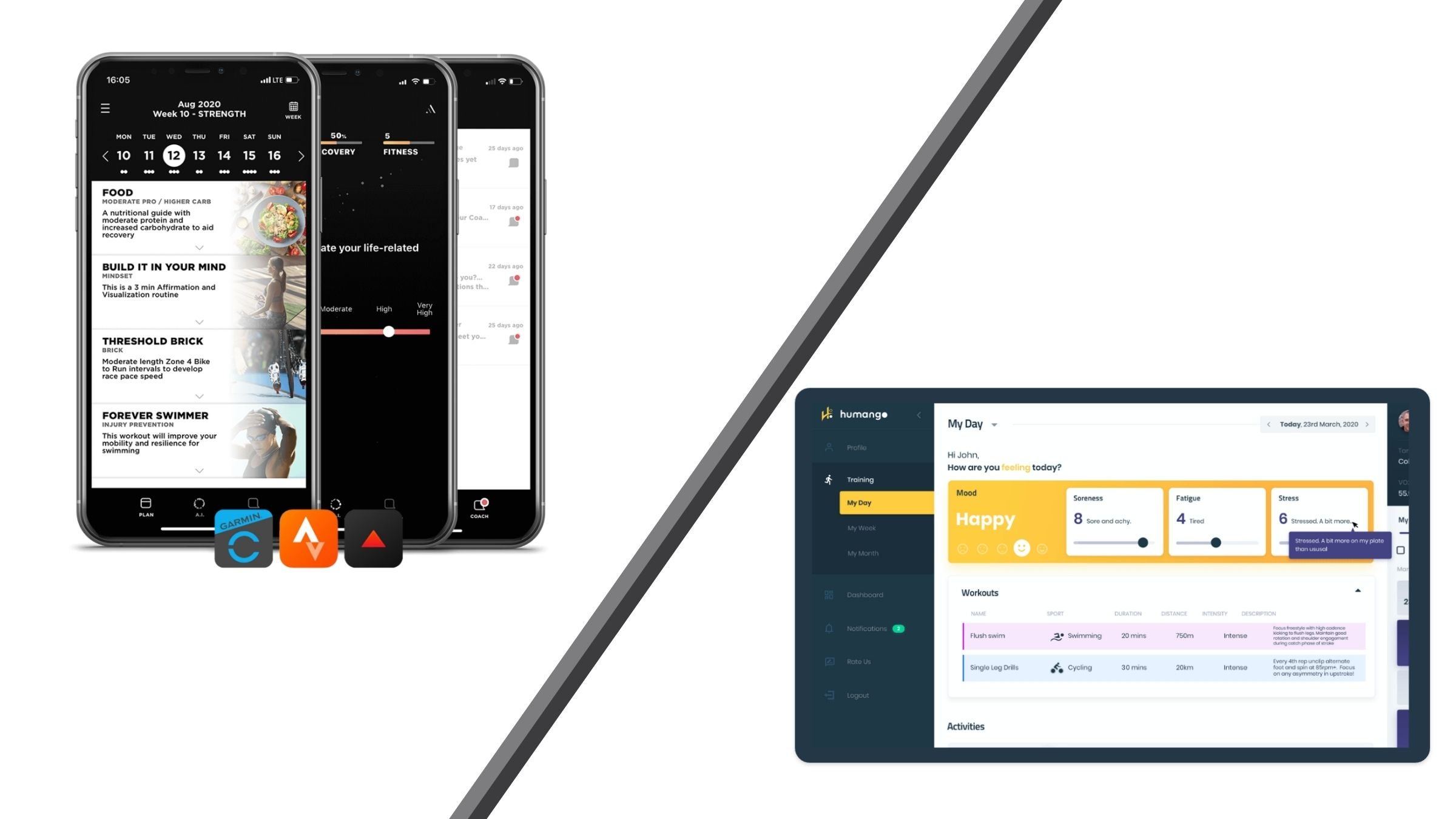 HumanGo is currently in web-based beta testing, though an app is in the works. The sign up process is thorough and detailed. Variables including your current skill level and experience in each of the disciplines are examined, as are your injury and illness status and history and your sleep habits. This deep dive instills confidence that their AI will have all the necessary information about you as an athlete and person in order to design an appropriate training plan. Their stated goal is to find a balance between sports and life, and they proudly announce that they have been “recognized by the National Science Foundation as a project worth funding.”