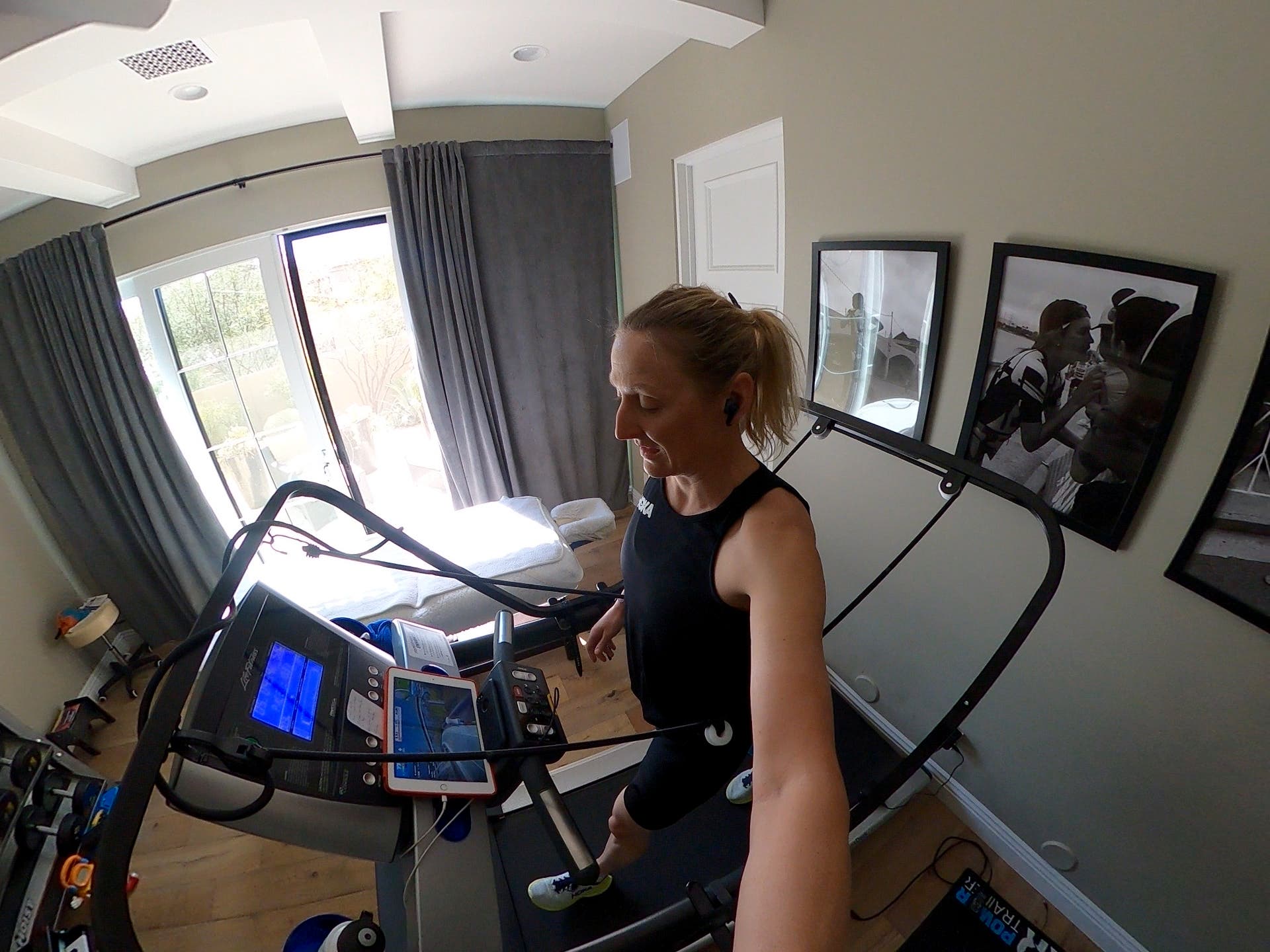 The Lever Runner, similar to the AlterG, suspends part of your body weight. Lever use a skeleton frame and elastic cord to hold the runner slightly above the treadmill, allowing them to move under partial body weight support. You can take up to about 45 pounds off your bodyweight. This means that you can run (or walk) on the treadmill, but with less impact on muscles and joints, which can be helpful in returning from injury or maintaining high-volume training while reducing the likelihood of injury.