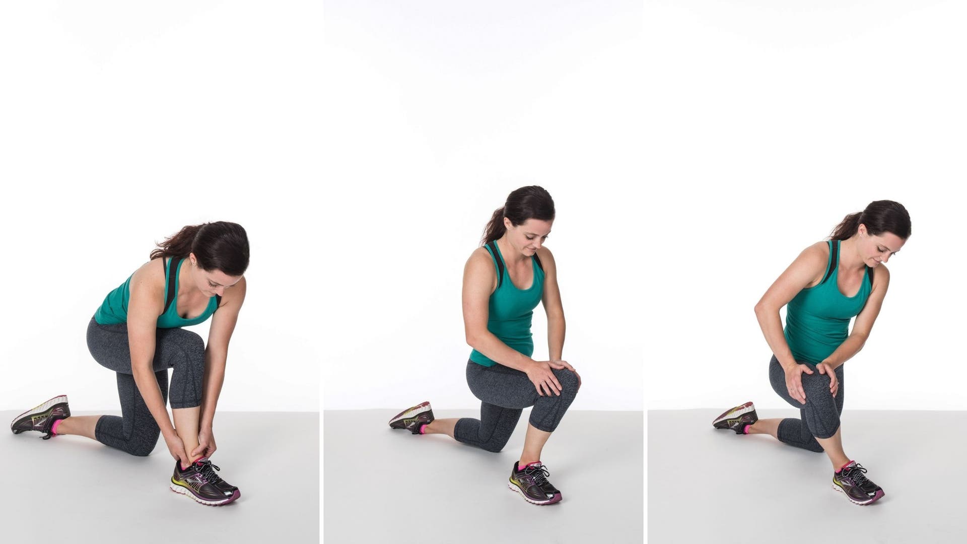 Carson recommends incorporating mobility exercises into your weekly training as well as your pre-race routine (after a 8-10 minute warm-up jog). Here’s her favorite race day routine, which can easily be performed at home, in the transition area, or on the track.