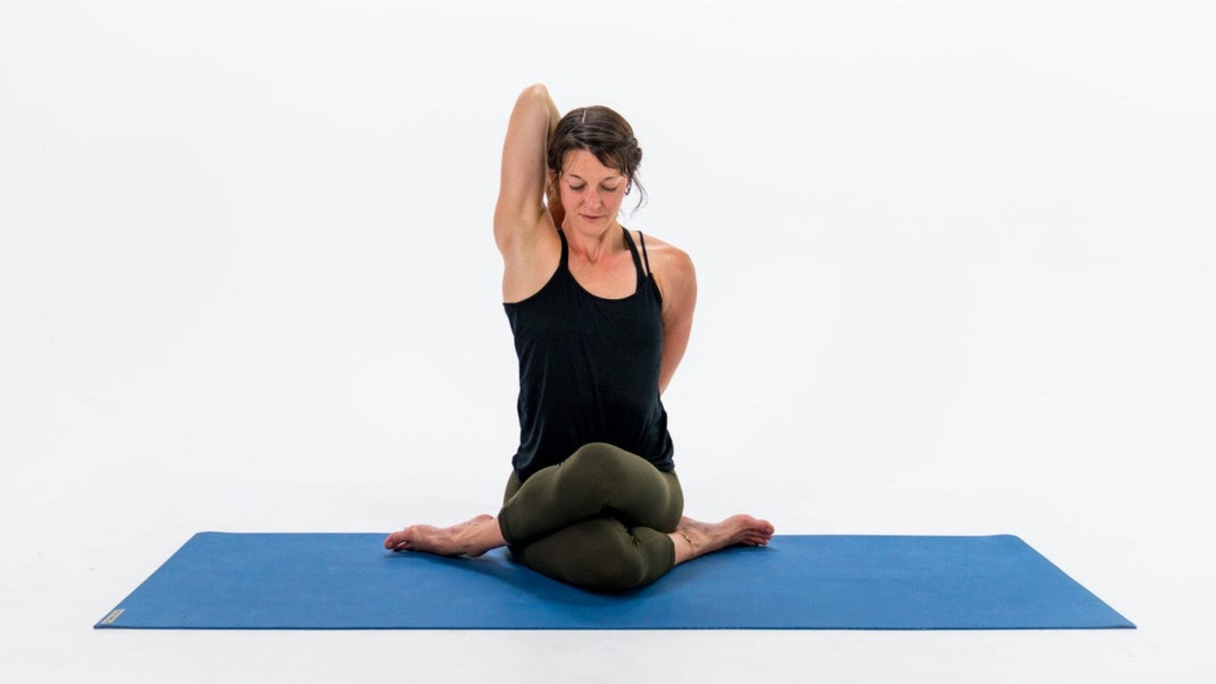 How it helps: When athletes lack internal rotation of their shoulder, it can affect their ability to swim certain strokes, especially a sighting stroke like breaststroke, and it can lead to a rotator cuff tear. The arms of this pose address both the internal rotation of your shoulder with one arm while increasing shoulder flexion with the opposite arm, Rountree said.