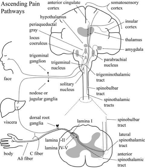“In general terms, there are specialized nerve cells called nociceptors, whose job it is to turn energy from the environment into a neural signal that our brain can decode,” says Mogil. Nociceptors receive signals about heat, cold, mechanical pressure, or certain chemicals – such as the inflammatory chemicals that are released in response to an infection or trauma – that the body needs to be aware of because of the potential for injury when in contact with such stimuli. When a nociceptor senses the triggering stimuli, an impulse races into the brain where it bounces around until the brain comprehends what information is being relayed. This process can be observed on functional MRI scans. “So we can tell you where it happens, but how it happens, that’s what’s called the hard problem of consciousness,” says Mogil.
