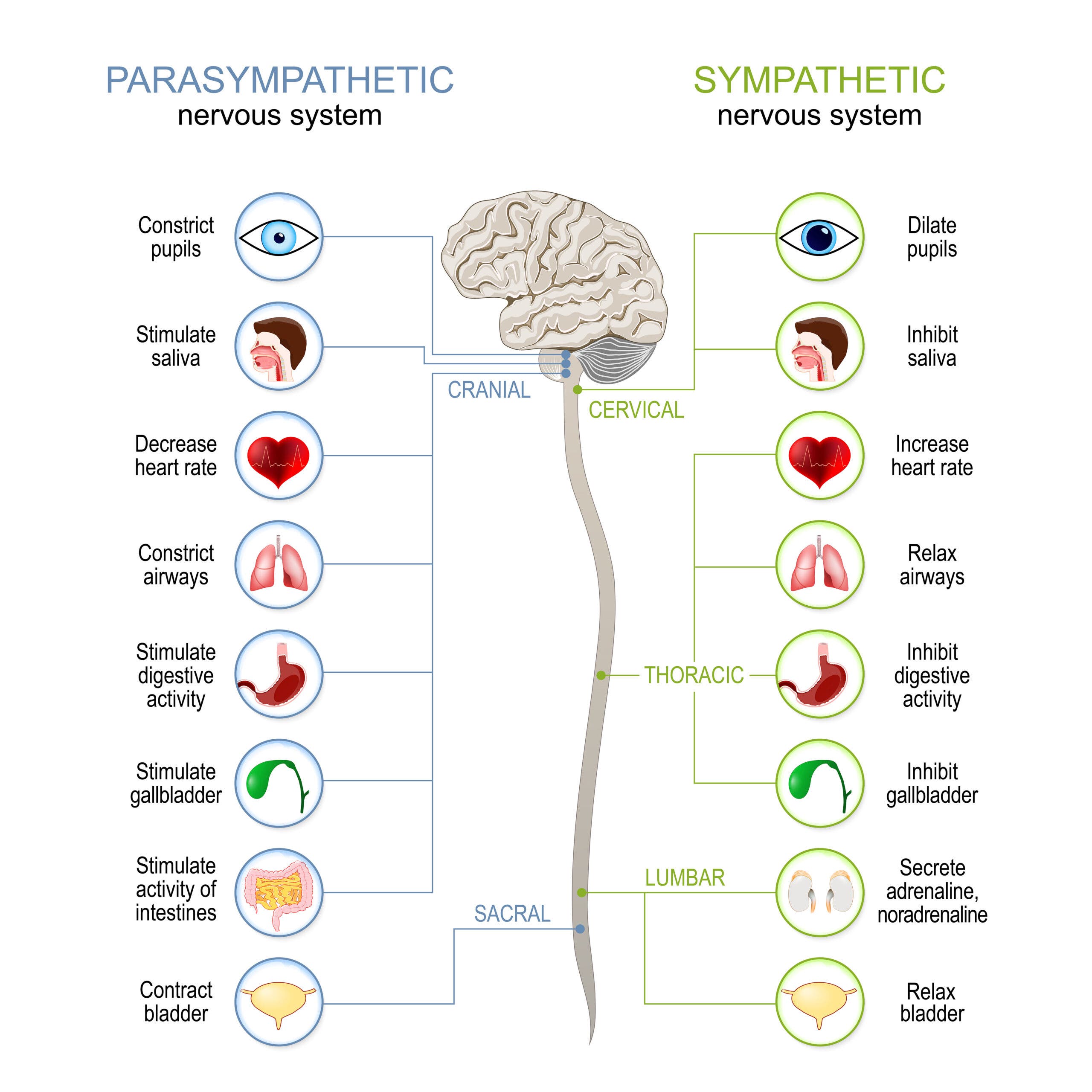 By now, you’re probably aware that heart rate variability is a measurement of the time periods between heartbeats. A higher HRV, meaning greater variability between the heartbeats, is desirable because it means that overall stress level is low. To understand how this works, we need a quick review of the autonomic nervous system (ANS). The ANS contains the sympathetic nervous system (SNS) that will activate when a threat is perceived and the parasympathetic nervous system (PNS) which is responsible for bringing the body to a relaxed state when the threat is resolved. The ANS is responsible for regulating involuntary body processes, like the heart beating, in response to perceived environmental and psychological stress.