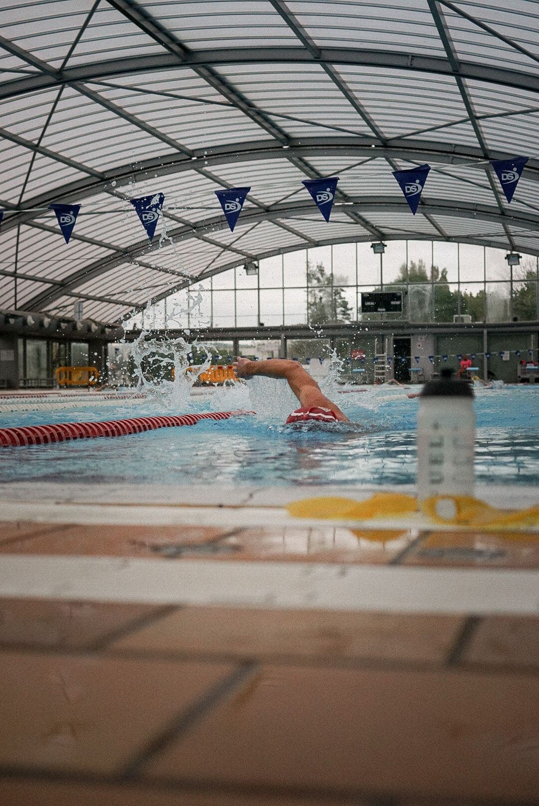 “This is the one swim workout during which I’ll use fuel,” he said. “I use a bottle with a Maurten 320 mix. And I have a Maurten 100/100 gel by the side of the pool in case I want it.”