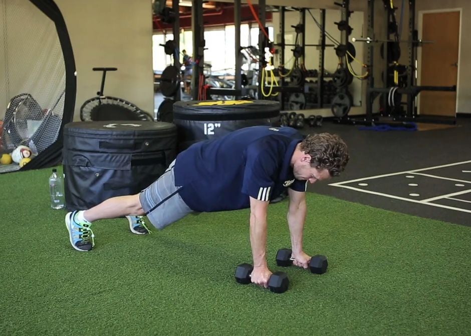 Bryan Hill of Rehab United demonstrates how to do the plank row exercise.