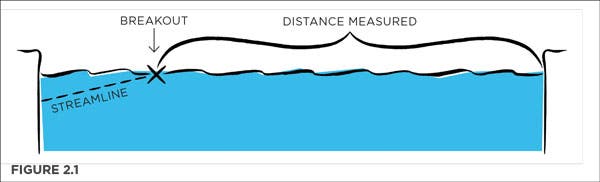 First, let’s set the stage: You are going to push off the wall and swim 25 meters. We will assume that you begin the 25-meter swim with a good underwater streamline—a contoured body position used by swimmers to reduce water resistance after diving into a pool or pushing off a wall. The vast majority of elite competitive swimmers employ an underwater streamline for 2–3 seconds before surfacing to begin stroking.