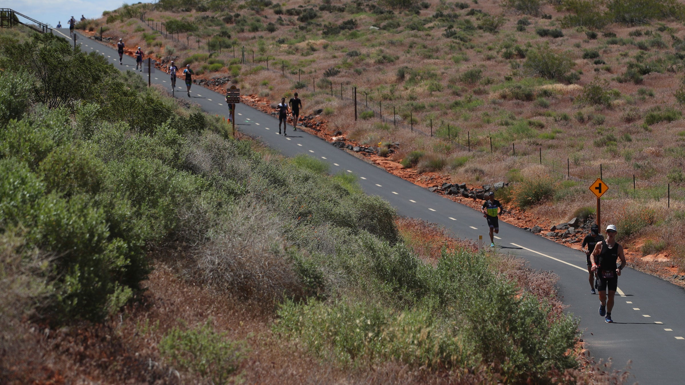Use your arms for balance. When running downhill, we don’t need the forward-back arm movement for power like we do on flats and uphills. Although it may look ridiculous in race photos, Xterra world champion Lesley Paterson recommends flailing your arms out to the side for balance. “It can help give your body the control it might need if speed takes over or a sudden change in direction is needed,” she says.