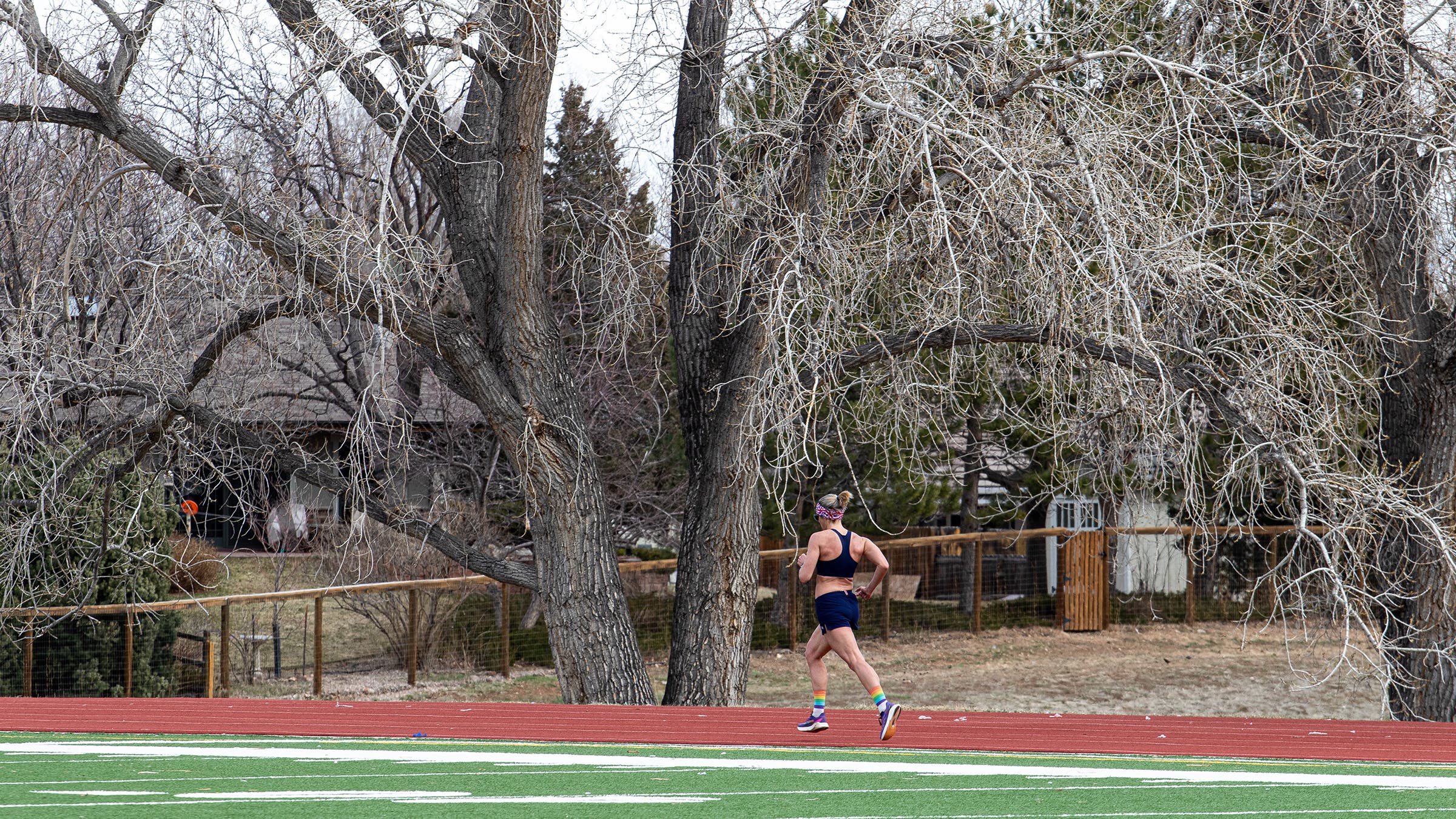 Emma-Kate Lidbury concludes her 7 x 1-mile lactate testing session with Alan Couzens. (Photo: Brad Kaminski)