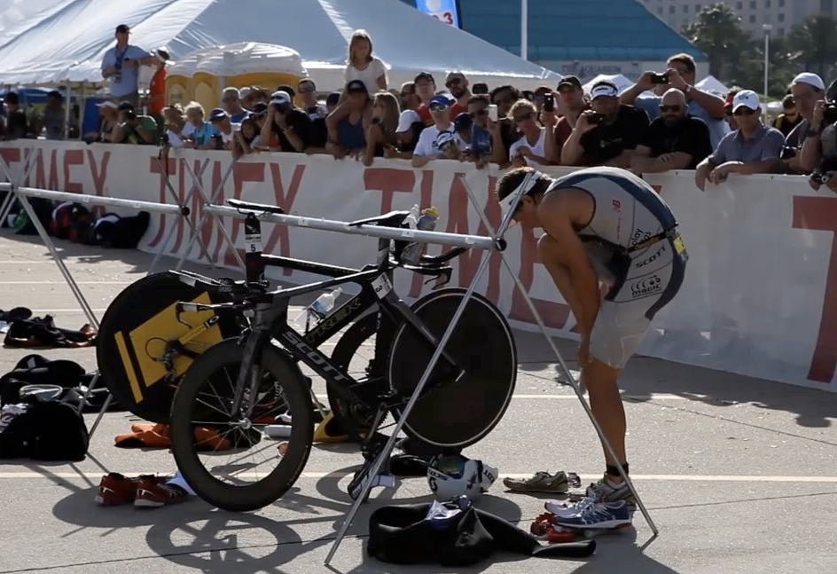 Want to improve on your transitions? Learn from the best! Every week we’ll bring you a video of a different pro in transition so you can pick up tips and apply them to your own race. This week we bring you Sebastian Kienle from T2 of Ironman 70.3 Texas. Kienle proves you can wear socks and have a fast transition.