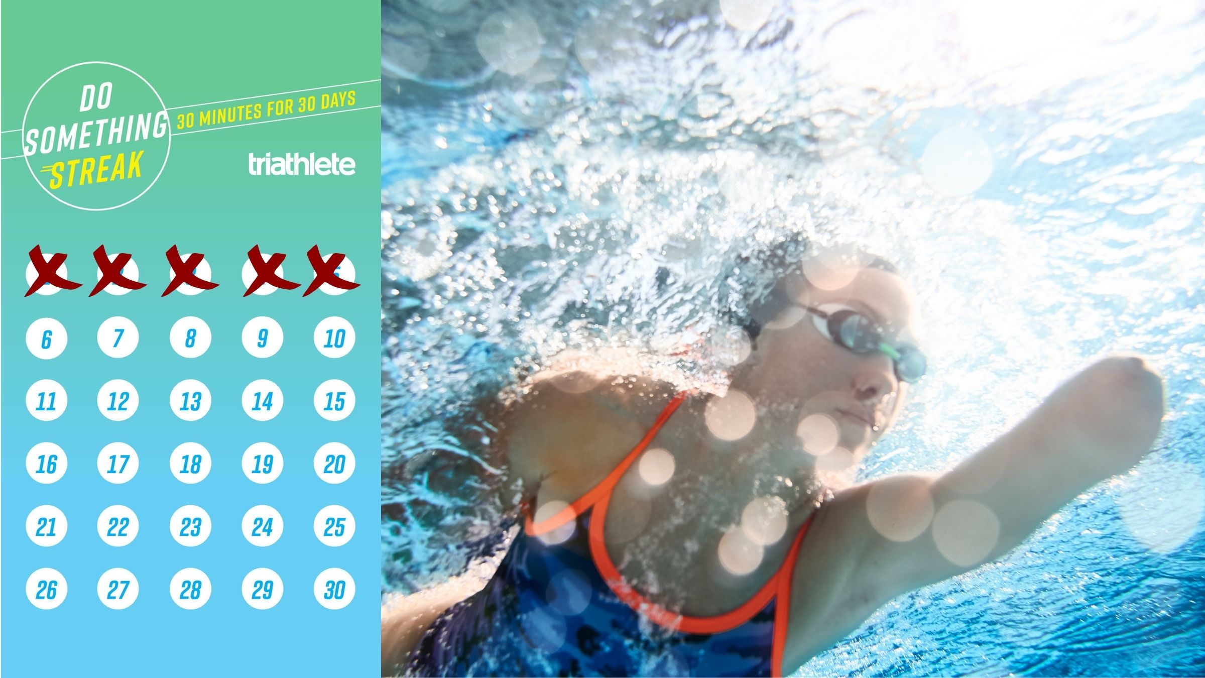 This week’s One-Hour Workout also doubles as our Day 5 Do Something Streak workout and features a straightforward swim session that’s perfect for this time of year. There are two variations—one longer, one shorter—so pick whichever works best for your current fitness level and/or time available.
