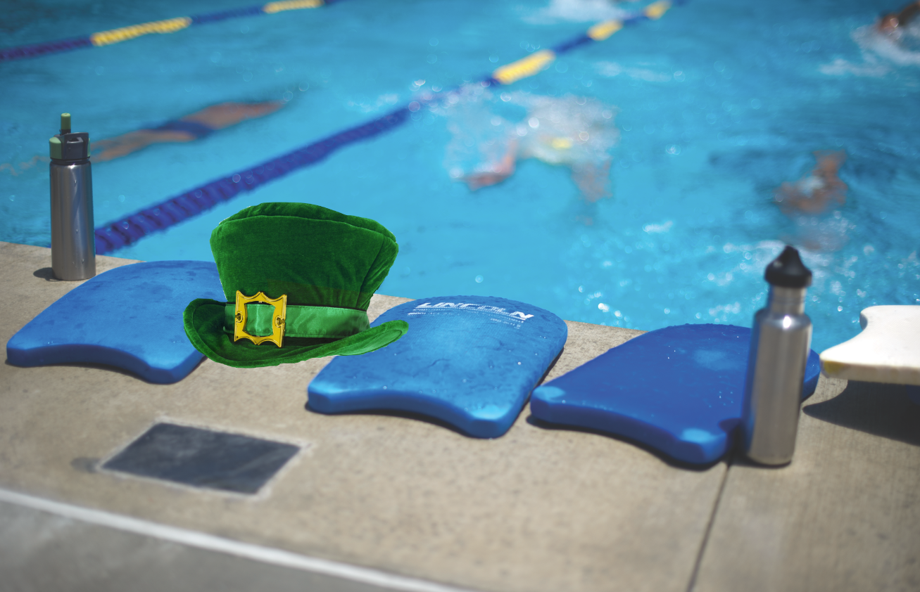 2. Swim with leprechaun hat on. Keep your head out of water the whole time for sighting (Tarzan Drill)