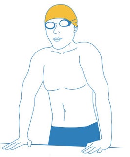 Use the edge of the pool to strengthen your swimming muscles. Put your hands on the top and push yourself out of the water. When your arms are completely straight, drop back into the water, and then pop out again. Keep your hands on the wall, shoulder-width apart during the drill.