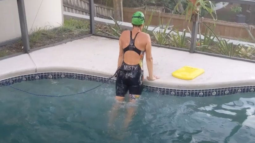 You can do most drills and technique work while hooked to the tether. See the workout details and then watch coach Sara and Misty demonstrate the entire workout in the video from Swim Like a Pro below. Check out Sara’s first video for more advice on how to setup a backyard tether.